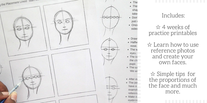 How to Draw Faces Workbook 2.0 is an Ebook for anyone who struggles with drawing faces. If you have a hard time with proportions, shading, features, or maintaining daily practice then this book is for you!